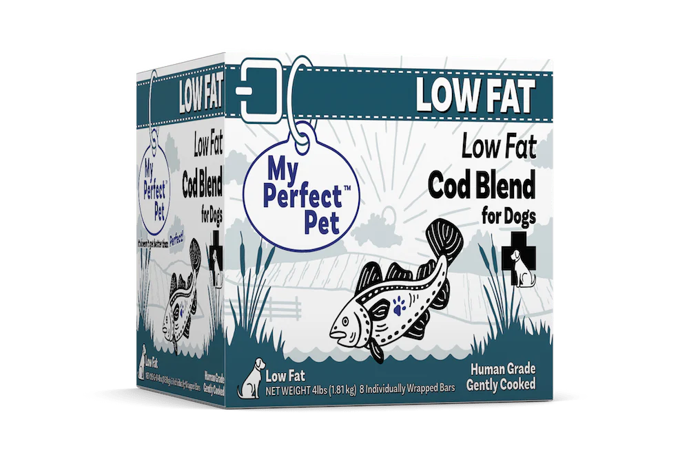 Low Fat Cod Blend for adult dogs is formulated to be lower in Fat than recommended in the AAFCO Nutrient Profiles For Dogs. Low Fat Cod Blend is recommended by veterinarians for dogs needing a restricted fat diet. Just because the diet needs to be lower in fat doesn’t mean it has to be lower in flavor – dogs naturally love the taste of freshly baked Cod blended with fresh whole foods. Because it does not meet the AAFCO standard for fat, it is labeled for intermittent feeding only unless recommended by a veterinarian. Because this blend is so low in fat it is also lower in calories, be sure to review feeding instructions with your veterinarian as your dog may require more than the recommended feeding amount.