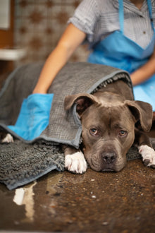 This microfiber mat with non-slip backing will soak up to 7 times its weight in water! Let’s not forget the hair and mud and dirt that goes along with your mutt. Quick drying, soft and snuggly, this mat can also be used as a towel with the ‘handy’ pocket attachments on the back.