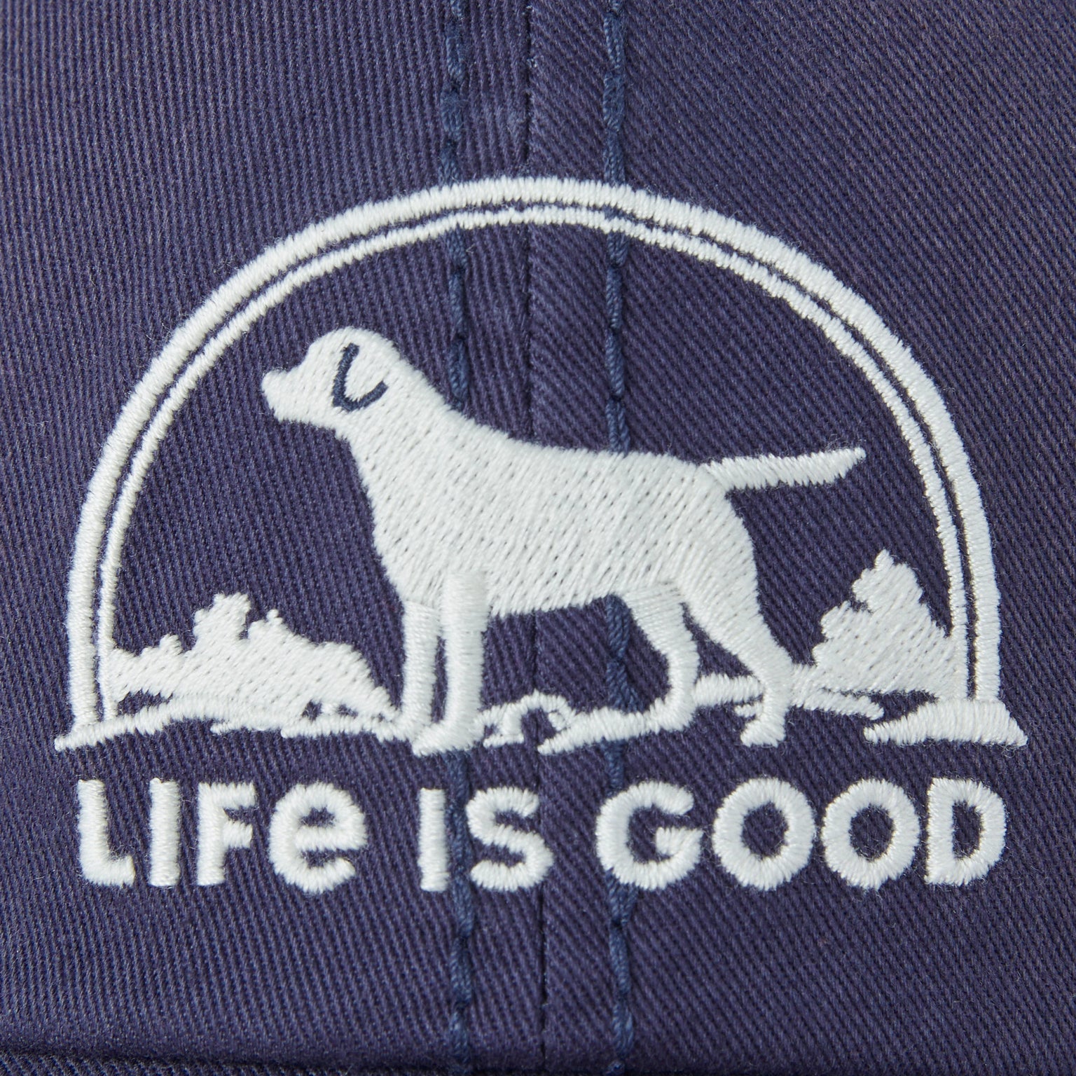 Six panel unstructured low-mid crown and four rows of stitching on brim and embroidered graphics
