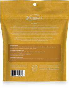 oat flour, barley flour, rolled oats, coconut oil, peanut butter, molasses, coconut glycerin, bananas, honey, cinnamon, turmeric, black pepper