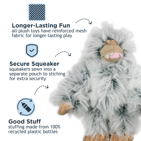 Continue the adventure indoors with Tall Tails' Yeti with Squeaker Toy! Throw, squeak, snuggle, repeat — this plush toy is made with you and your pup in mind. Fashioned for endless interactive play and cuddles, our plush toys make for paw-fect comforting companions. In addition, our squeakers are sewn into a separate pouch and stitched into the seam for extra protection.